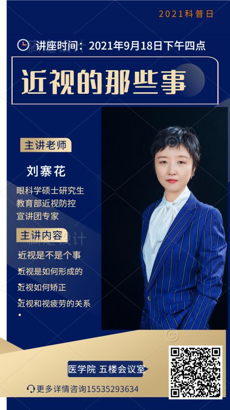 刘寨花老师是教育部近视防控宣讲团专家,近三年积极在校内校外、线上线下及大同电视电台等各类媒体,开展眼健康科普知识讲座50余场,深受学生及广大市民的喜爱,为大同市儿童青少年近视防控事业做出了贡献。