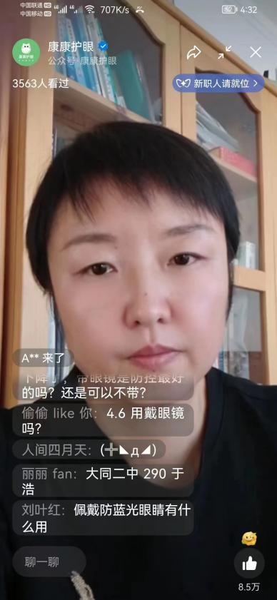 10月22日,受疫情影响,大同市平城区全域进入了居家静默的第二周。全是各学校“停课不停学”,儿童青少年学生们全部居家网课。在此期间,长时间面对电子屏网课,用眼健康、近视防控成了困扰学生和家长的一大问题。tyc8722太阳集团眼科教研室刘寨花老师受邀在“康康护眼”视频号,做静默期间学生居家网课近视防控专题科普直播,为广大学生和家长们答疑解惑,并且对于居家期间儿童青少年眼健康和近视防控需要注意的事项,给出了切实可行的意见和建议。学生和家长们与刘老师踊跃互动,直播观看人数近3700人。