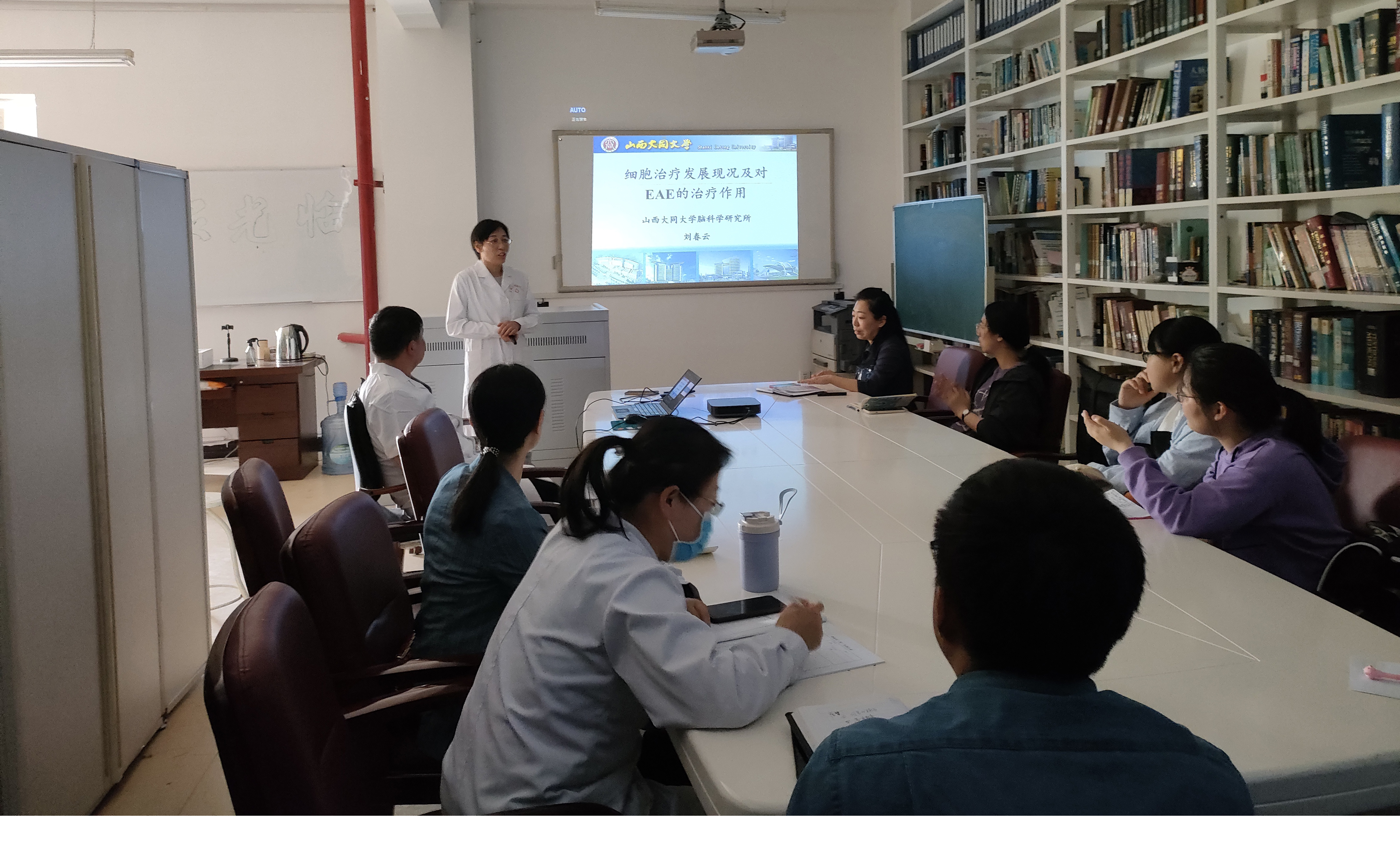 为贯彻落实习近平总书记提出的一系列科技创新的新论断新要求,培养广大师生的科学情怀及科学素养,按照《2023年太阳集团城娱8722科技活动周活动方案》要求,5月26日下午,由太阳集团城娱8722科技部、tyc8722太阳集团、太阳集团城娱8722脑科学研究所(山西省科普基地、分子细胞免疫学大同市重点实验室)联合举办的2023年太阳集团城娱8722科普周科普讲座活动在太阳集团城娱8722脑科学研究所图书会议室举行。科普讲座由脑科学研究所所长孟涛教授主持,tyc8722太阳集团刘春云副教授作了题为《细胞治疗发展现况及对EAE的治疗作用》的科普讲座,医学部部分教师、脑科学研究所研究生、热爱科学研究的本科生参加了科普讲座。