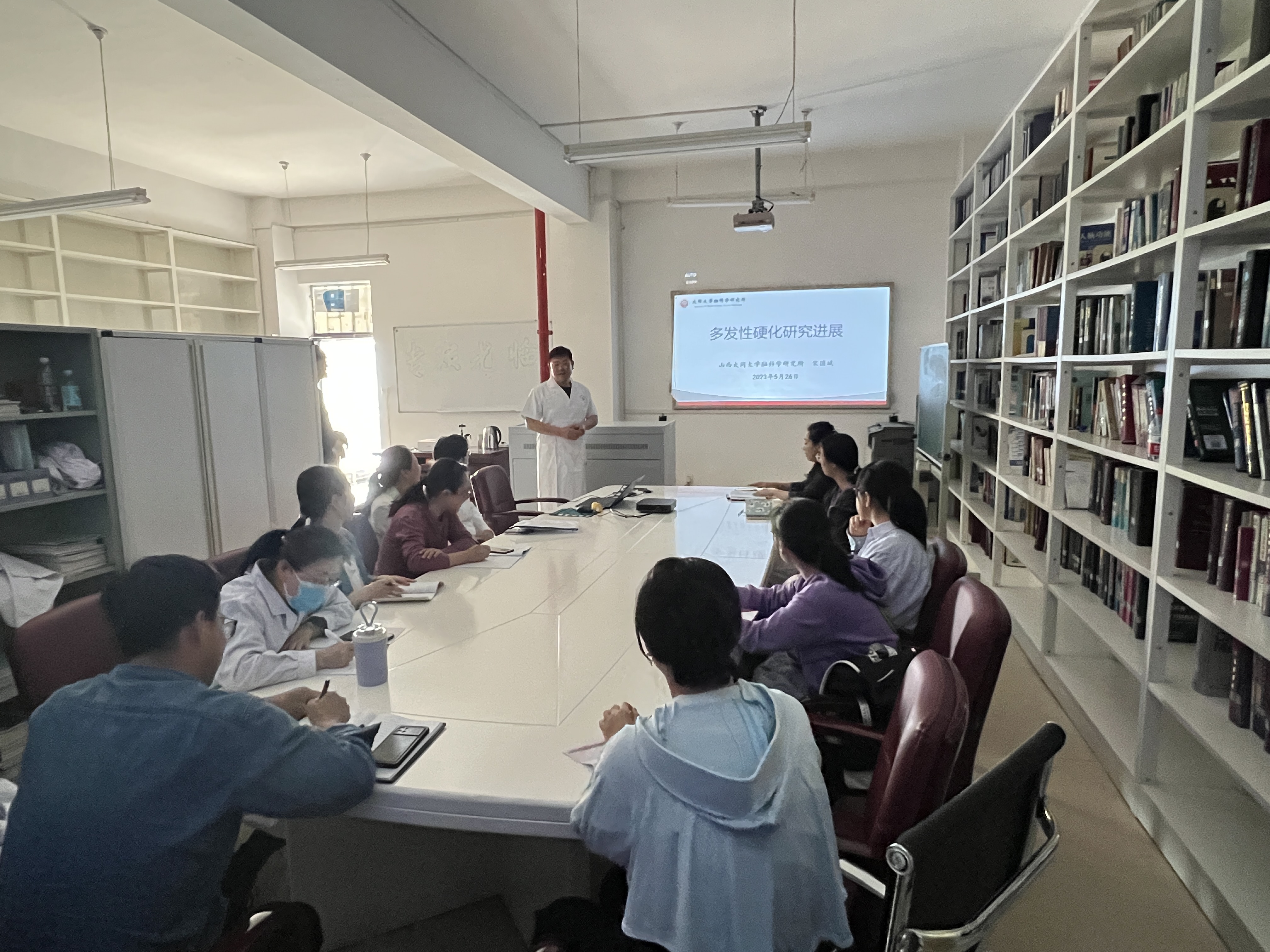 为贯彻落实习近平总书记关于科技创新的重要论述,弘扬科学家精神,培养广大师生热爱科学、崇尚科学的科学情怀,按照《2023年太阳集团城娱8722科技活动周活动方案》要求,5月26日下午,由太阳集团城娱8722科技部、tyc8722太阳集团、太阳集团城娱8722脑科学研究所(山西省科普基地、分子细胞免疫学大同市重点实验室)联合举办的2023年太阳集团城娱8722科普周科普讲座活动在太阳集团城娱8722脑科学研究所图书会议室举行。科普讲座由脑科学研究所所长孟涛教授主持,tyc8722太阳集团宋国斌副教授作了题为《多发性硬化研究进展》的科普讲座,医学部部分教师、脑科学研究所研究生、参与科学研究的本科生参加了科普讲座。