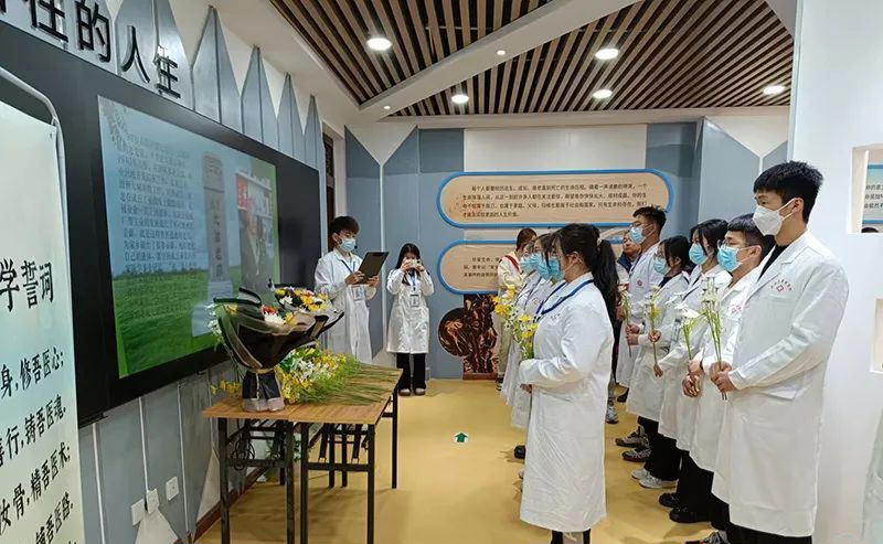 4月4日9时,对三位“大体老师”缅怀纪念仪式在蒙蒙细雨中于仁和楼生命科学馆内正式开始。默哀、献花、鞠躬,参与活动人员用最崇高的敬意表达对三位“大体老师”的生命礼赞。随后,全体医学生宣誓,诵读解剖学誓词,表达他们救死扶伤的仁爱和决心。