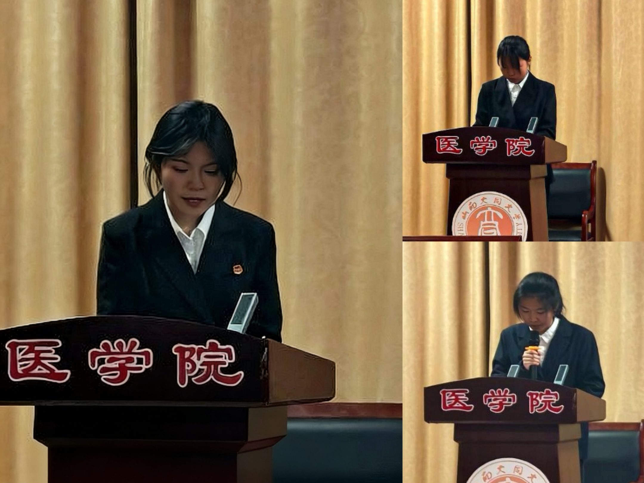 在优秀志愿者案例分享环节中,三位优秀志愿者代表分享了她们在不同岗位上的服务故事。张瀚月驻足采血区自助机前,为老年患者一遍遍演示操作流程,俯身耐心讲解每一个步骤,帮助老人跨越就医“数字鸿沟”,用陪伴诠释“帮助别人就是温暖自己”的信念。黄妍铄坚守骨科诊室,面对患者的焦虑,她曾一度手足无措,但在实践中她逐渐学会换位思考,以专业与共情化解不安,在每一次的耐心解释中让责任落地生根。赵心扬奔走于门诊大厅,用一句句清晰的指引、一次次蹲身帮扶行动不便者的切实行动,成为了患者眼中的“恒温器”,让冰冷的机器旁多了一份人文关怀。三位志愿者用真诚与行动证明,微小的善举也能汇聚成照亮他人的光。
