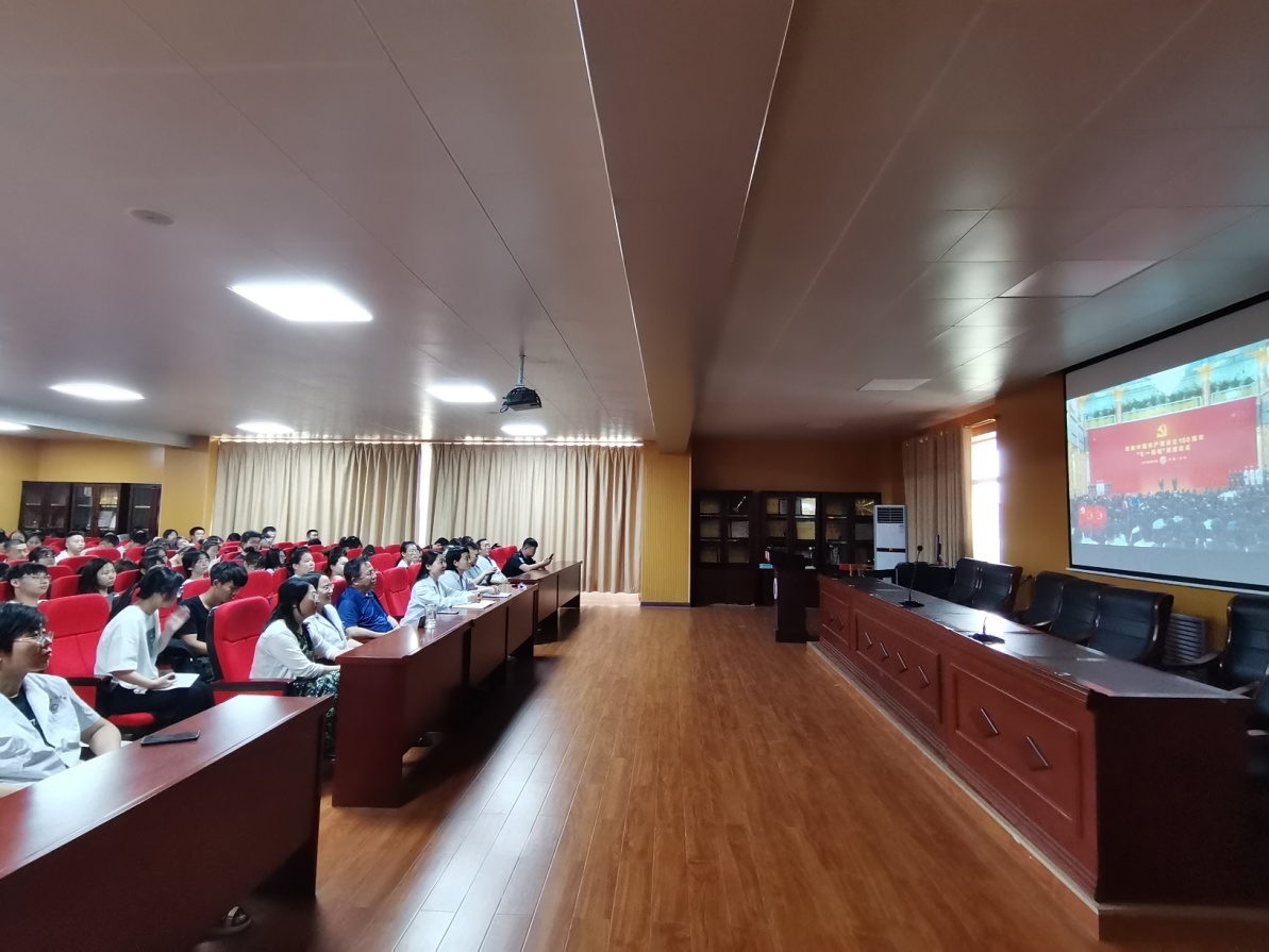6月29日上午,庆祝中国共产党成立100周年“七一勋章”颁授仪式在北京人民大会堂隆重举行。tyc8722太阳集团组织教工党员及学生党员进行了集中收看。tyc8722太阳集团党委书记赵胜基、护理学院党委书记杨秀峰、tyc8722太阳集团院长张年萍、副院长章培军以及副院长朱壮彦等在仁和楼五层学术报告厅收看了本次大会直播。