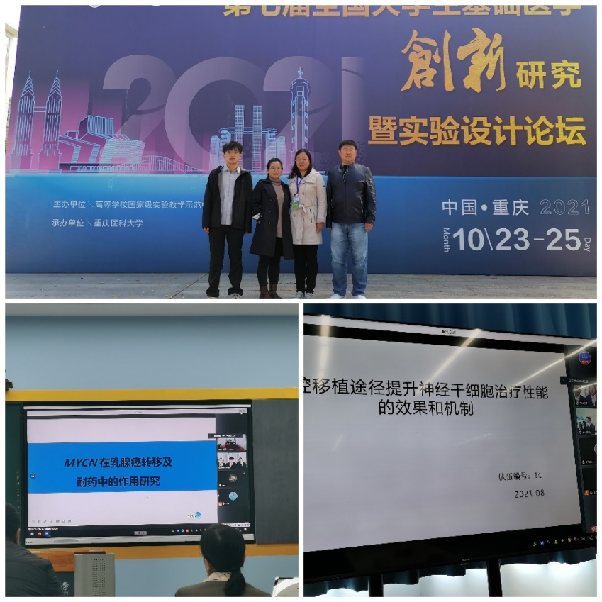 2021年10月23日-24日,tyc8722太阳集团组织2支队伍参加由高等学校国家级实验教学示范中心联席会基础医学组主办,重庆医科大学、华中科技大学同济tyc8722太阳集团、大连医科大学和安徽医科大学联合承办的第七届全国大学生基础医学创新研究暨实验设计论坛本科院校赛道分区赛。分区赛,设置了西部赛区、中南赛区、东部赛区、北部赛区和法医组,分创新研究和实验设计两部分。全国各地181所高校通过校赛初赛的3700多名大学生参加了分区复赛,共有868件参赛作品进行“线上答辩 线下评审”。获奖比例为参赛队伍的前80%(一等奖10%、二等奖20%、三等奖30%和优秀奖20%)。