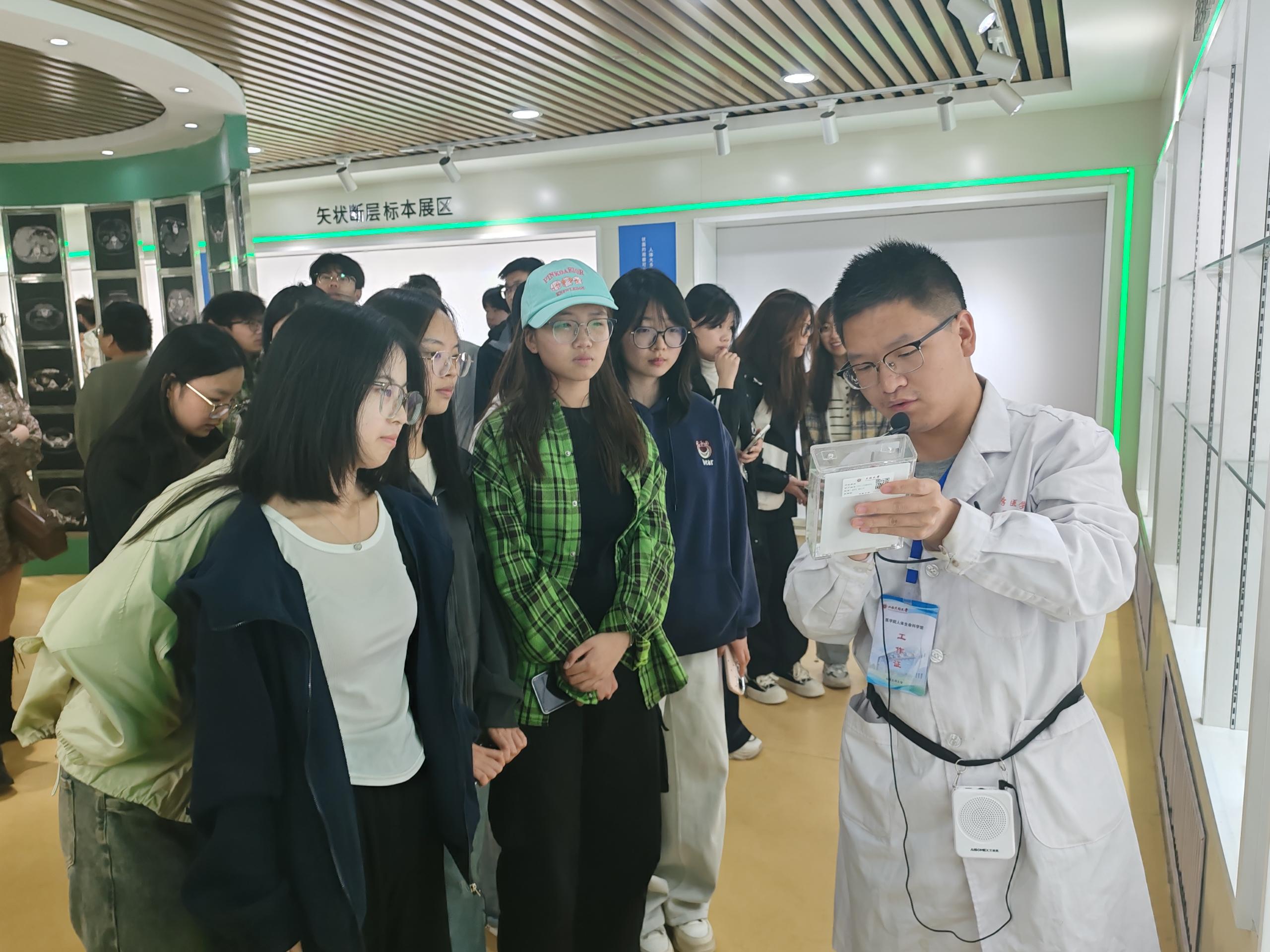 为创新思想政治教育形式,学工部组织的“行走的思政”系列活动于近日正式启动。作为本次活动的重要参观点之一,tyc8722太阳集团人体生命科学馆以其独特的专业资源优势,为2024级新生带来了一堂生动的生命教育实践课。值得一提的是,设在该馆的“生命教育创新工作室”(辅导员工作室)充分发挥平台优势,在负责人蔡占玲老师的带领下,将医学专业资源与思政教育深度融合,预计在三个月内接待新生六千人次。