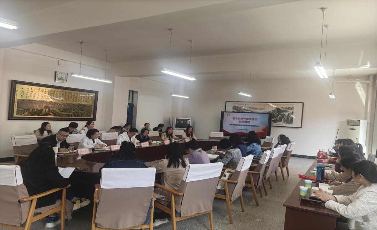 会议由tyc8722太阳集团副院长闫海龙主持,tyc8722太阳集团与外国语学院的领导、骨干教师以及相关基层教学组织负责人齐聚一堂,共同探讨合作发展的新路径。在联学共建方面,双方围绕课程建设、师资交流、学生培养等议题展开深入讨论,达成多项共识,包括联合开设医学英语课程、开展跨学科科研项目、组织学生进行交流活动等。会议明确了下一步的工作重点与分工。双方将加强课程对接,优化教学内容,确保医学与外语课程的有机结合;同时,加大师资交流力度,定期开展教师培训与学术交流活动,提升教师的跨学科教学能力。在教学方面,提升大学英语四六级的通过率及考研学生的英语分数。同时,争取学校及相关部门的支持,确保顺利推进。