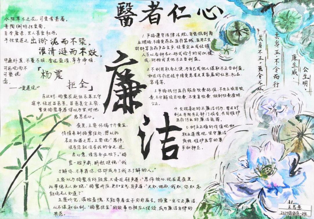 这场“医笔绘清廉,青春守初心”手抄报比赛不仅是艺术创意的比拼,更是一场医德教育的生动实践。当廉洁基因融入医学青年的血脉,杏林之树必将长青,仁心仁术方能永续。