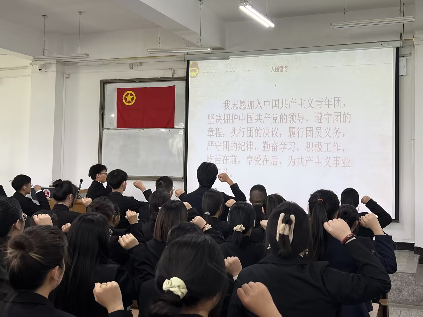 为加强共青团组织建设,激励青年学子坚定理想信念,6月7日下午,在仁和楼J02教室,tyc8722太阳集团隆重举行了2025年上半年新团员入团仪式,新老团员代表及团委书记谢丽君出席,共同见证197名医学学子光荣加入中国共青团。