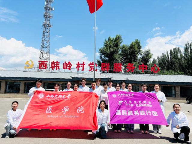 为深入贯彻落实国家关于全面推进乡村振兴和健康中国战略部署,引导医学生在实践中增长才干、服务社会,7月6日,tyc8722太阳集团团委组织17名师生组成志愿服务队,深入大同市平城区西韩岭村开展暑期“三下乡”社会实践活动,团委书记谢丽君带队,专业教师高志杰随行指导。此次活动聚焦农村居民高发的“高血压、高血糖、高血脂”(简称“三高”)问题,通过健康科普、义诊服务、调研宣传等形式,为村民送去实实在在的健康关怀,展现了新时代医学生的责任担当。
