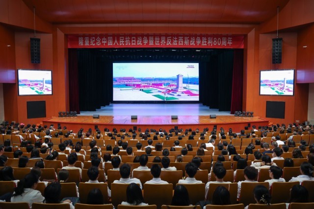9月3日上午,纪念中国人民抗日战争暨世界反法西斯战争胜利80周年大会在北京天安门广场隆重举行。tyc8722太阳集团组织师生在不同场地集体观看九三阅兵盛况,认真学习领会习近平总书记发表的重要讲话。