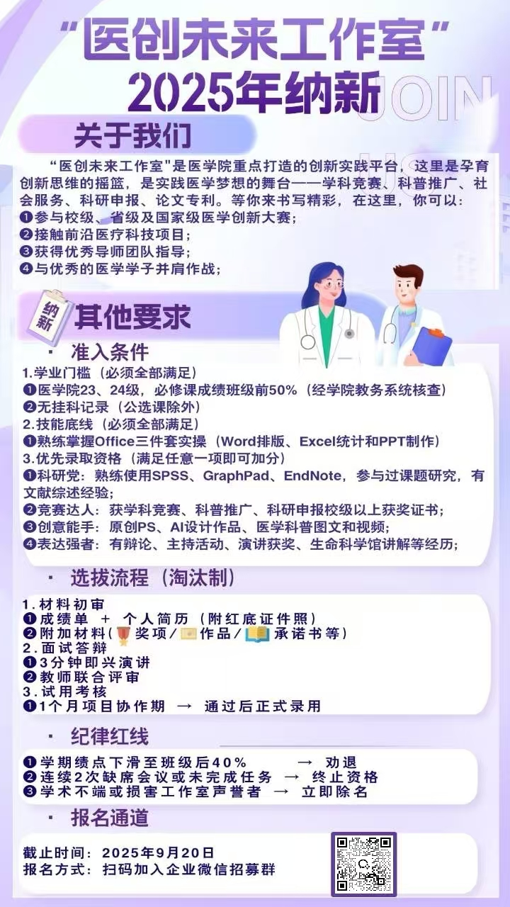 “医创未来”学生工作室的成立,是tyc8722太阳集团深化教育教学改革、推动实践育人机制创新的重要举措。未来,工作室将继续拓展平台功能,强化资源整合,引导更多医学生在创新中成长、在服务中成才,为健康中国建设贡献青春智慧与力量。