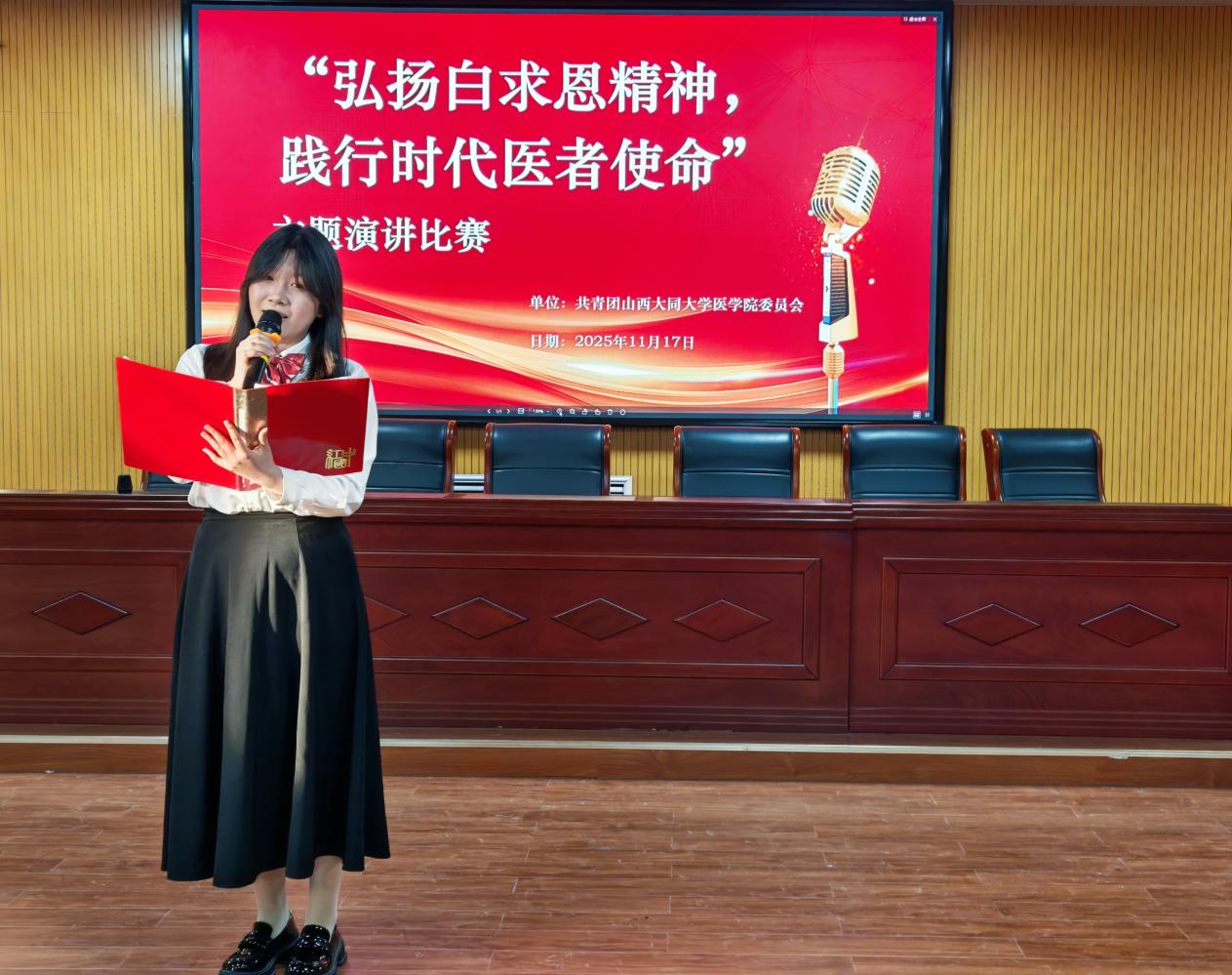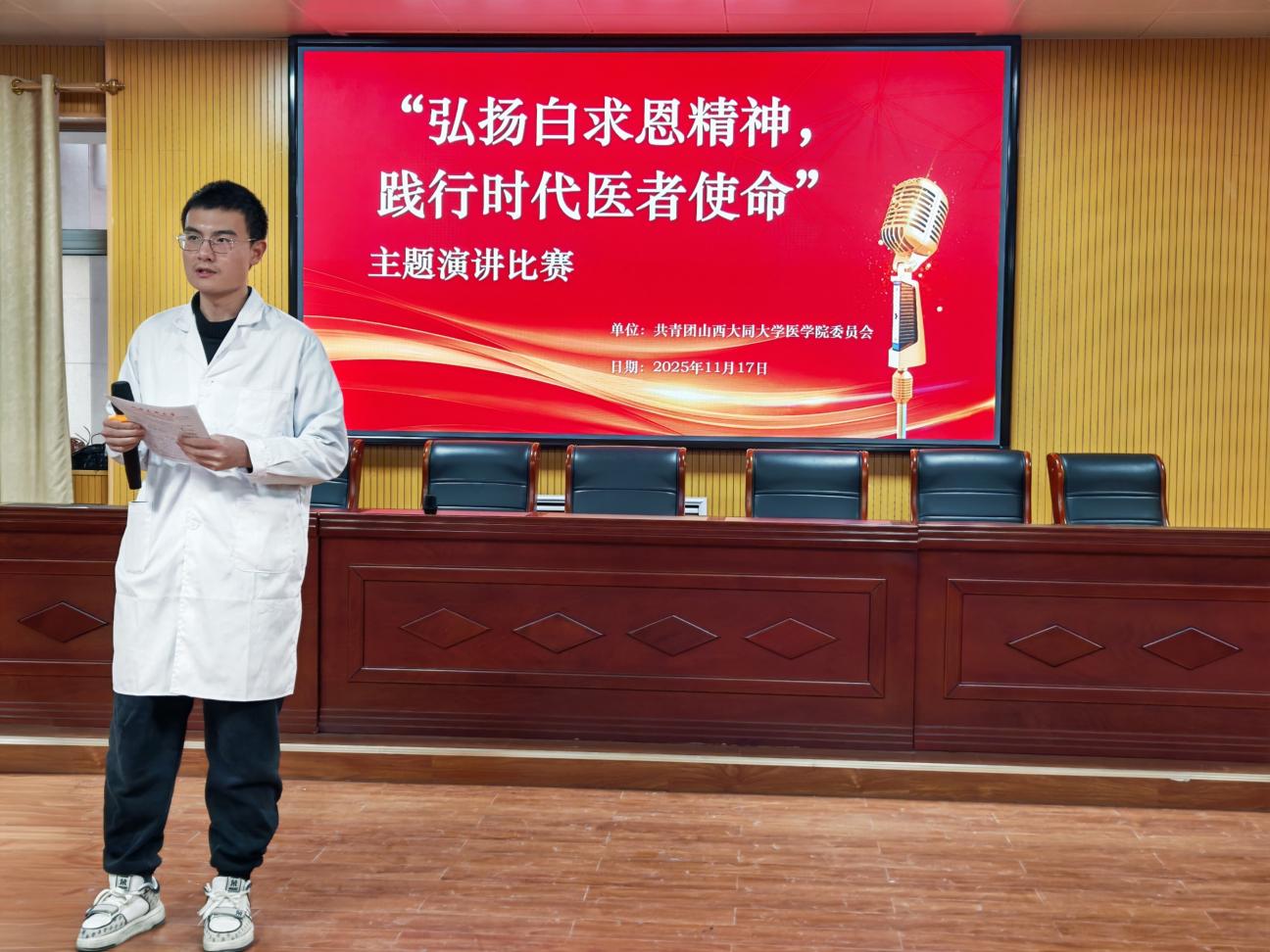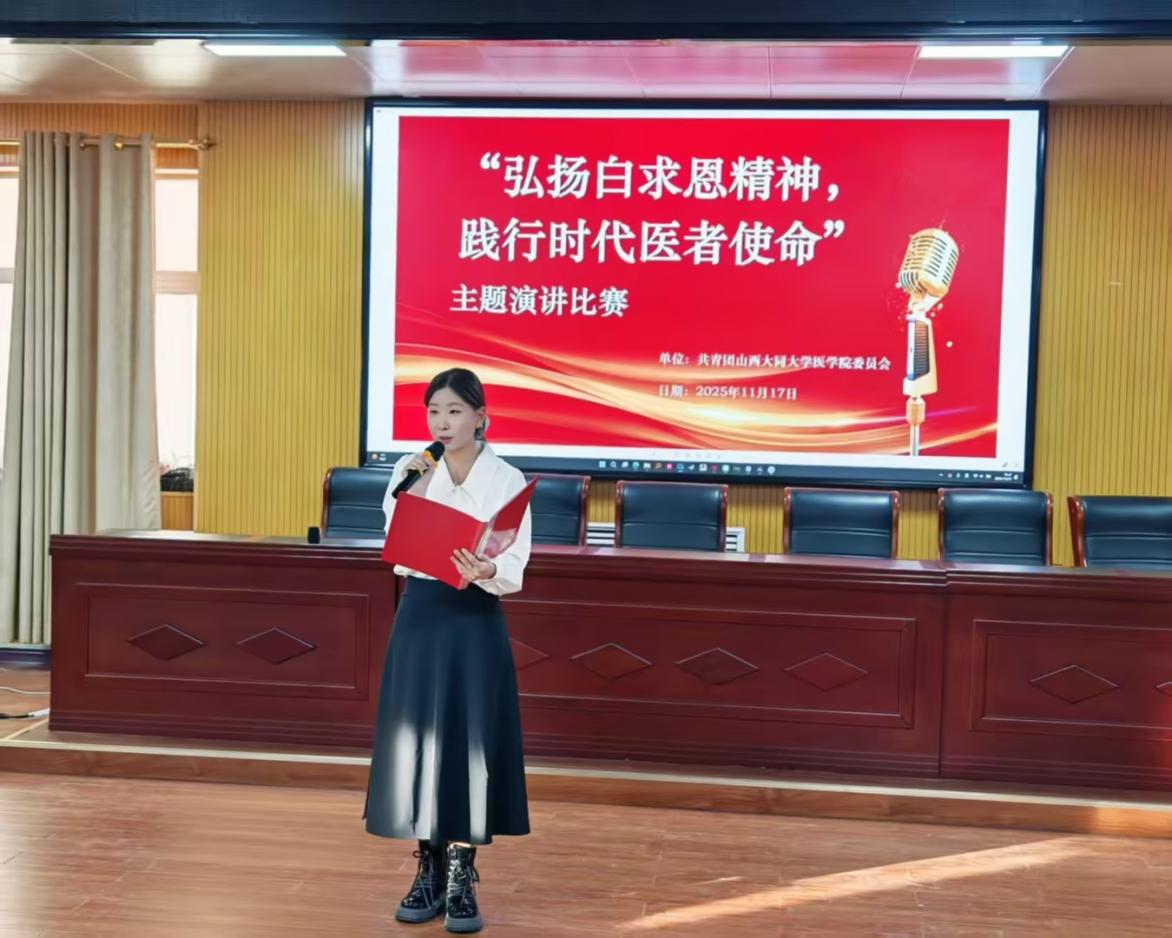为深刻缅怀国际主义战士白求恩同志,传承其无私奉献、精益求精的崇高精神,2025年11月17日晚,由tyc8722太阳集团团委组织的“弘扬白求恩精神,践行时代医者使命”主题演讲比赛在仁和楼五楼报告厅隆重举行,太阳集团城娱8722朗诵艺术协会部长张馨,张潇月,孙文斌担任评委。