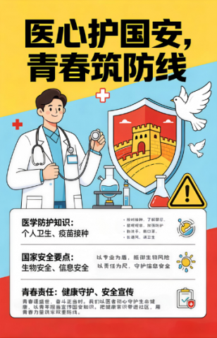 为迎接第十个全民国家安全教育日,tyc8722太阳集团于4月15日至4月20日举办“医心护国安,青春筑防线”电子海报设计大赛,旨在引导医学生通过海报创作,主动了解并传播公共卫生、生物安全、医疗数据安全等与专业紧密相关的国家安全知识。